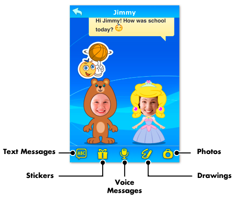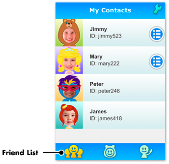 When you open the app, the first thing you'll see is your contacts list. Tap on a contact to send a message or to view messages that have been sent to you.