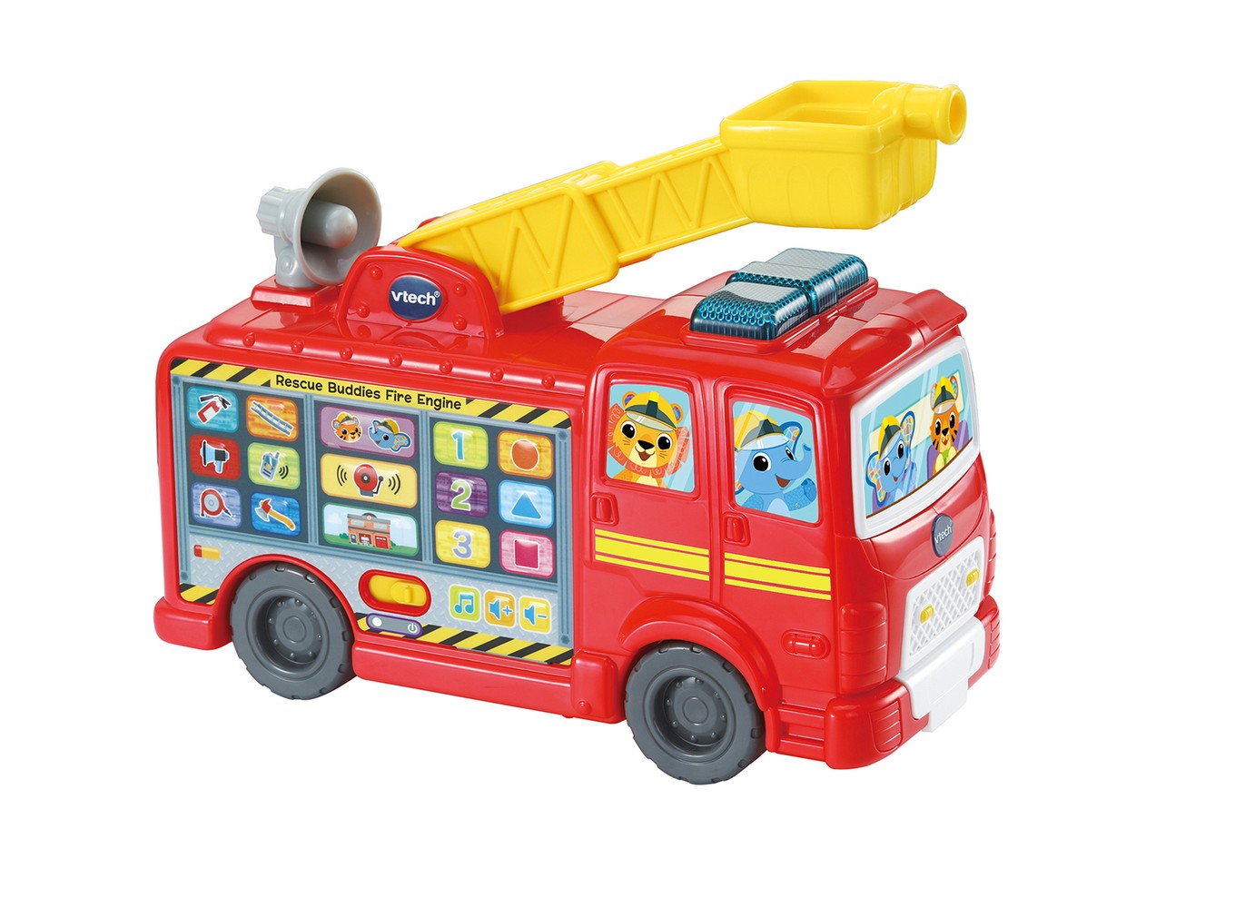 Sound the alarm for adventure! Ingnite imaginations with the Rescue Buddies Fire Engine! Drive around and use the ladder to assist with daring rescues. Take a break at the firefighter's discovery station to hear about tools, numbers, shapes and more. Let's save the day! Includes 3 sing-along songs & 15 melodies.