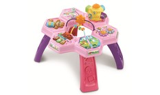 2-in-1 table that features 6 development zones; Light up piano keys & peek-a-boo fox, mini story book, twisting bear, animal maze, colourful gears and beehive shape-sorting.