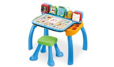 This desk features an interactive desktop with five activity pages that introduce letters, writing, numbers, music and more. Practice writing letters and numbers, drawing shapes, and more with the stylus and guiding writing pad. The light-up display shows each stroke and guides kids step by step.