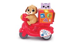 For the purr-fect pizza every time, call this cute delivery duo. Help Puppy and Kitty drive delicious pizzas to customers. Press Kitty’s head and the scooter will zoom across the floor while Puppy's head swivels; hot and fresh pizza is on the way!