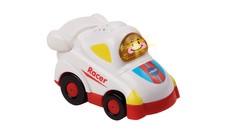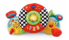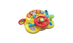 Brightly coloured role-play toy introduces vehicles, colours, numbers and animals through fun phrases and realistic car sounds. Features include light-up horn button and wing mirror for self-discover