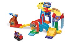 Play set comes complete with SmartPoint Police Car, mini getaway car and mini helicopter! Smartpoint locations trigger fun phrases as the Police Car drives over them.