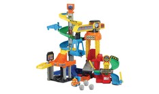 Lift, fix and learn with Howie and his hot rod at the Toot Toot Drivers Lift and Fix Repair Shop by VTech.