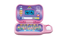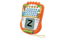 Cute bilingual English/French tablet featuring 12 brightly coloured light-up app buttons introducing fun phrases, music & sounds about maps, music & more!
