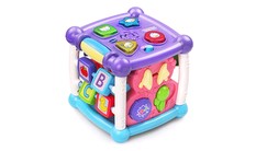 5 smart point locations trigger phrases, animal sounds and melodies. Features a shape sorter, a spinning basket and much more
