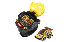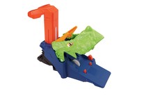 Turbo charge your dino or race car and blast it from the T-Rex Launcher. The faster you charge, the farther it goes!