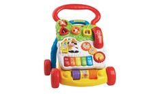 2-in-1 walker that supports baby’s first steps. Introduces numbers, shapes, animals and colours through fun activities and music.